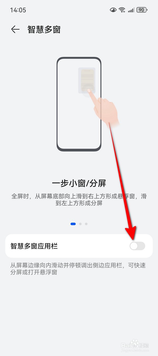 3、关闭智慧多窗应用栏。