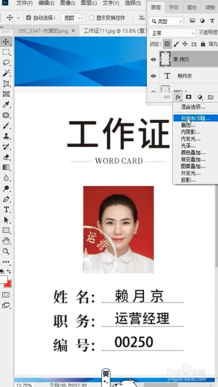 1、锁定透明像素,填充白色,打开混合选项,选择斜面和浮雕。