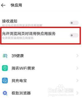 3、3,最后,大家只需要点击“允许网页浏览时调用快应用服务”右侧的关闭键即可。